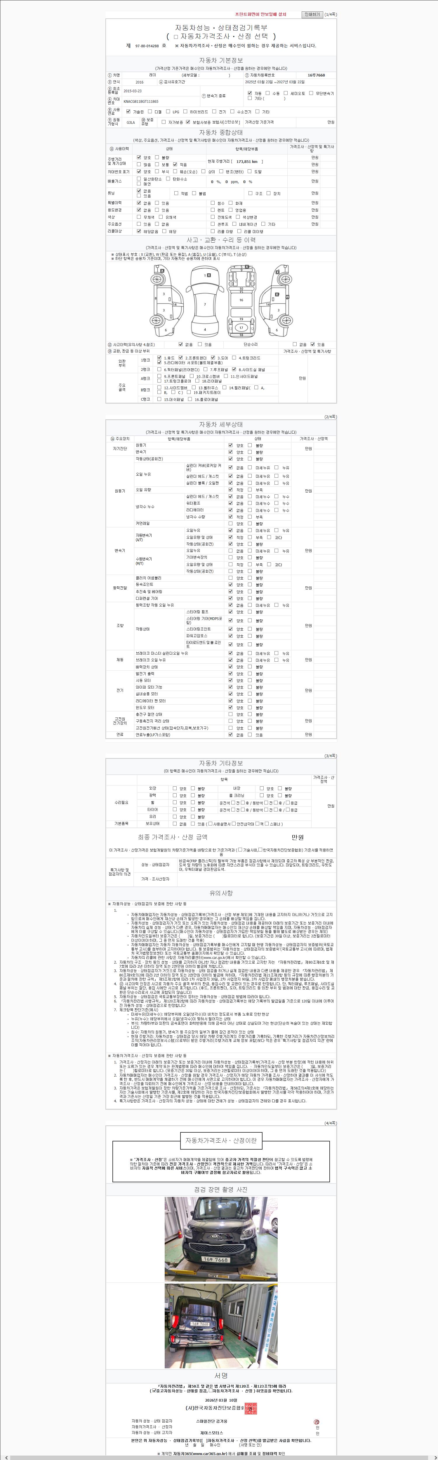 2. 차량 등록증이나 성능점검지 등을 상담자에게 요청및 확인하시고 사전에 미리 점검 하시기를 권유드립니다.