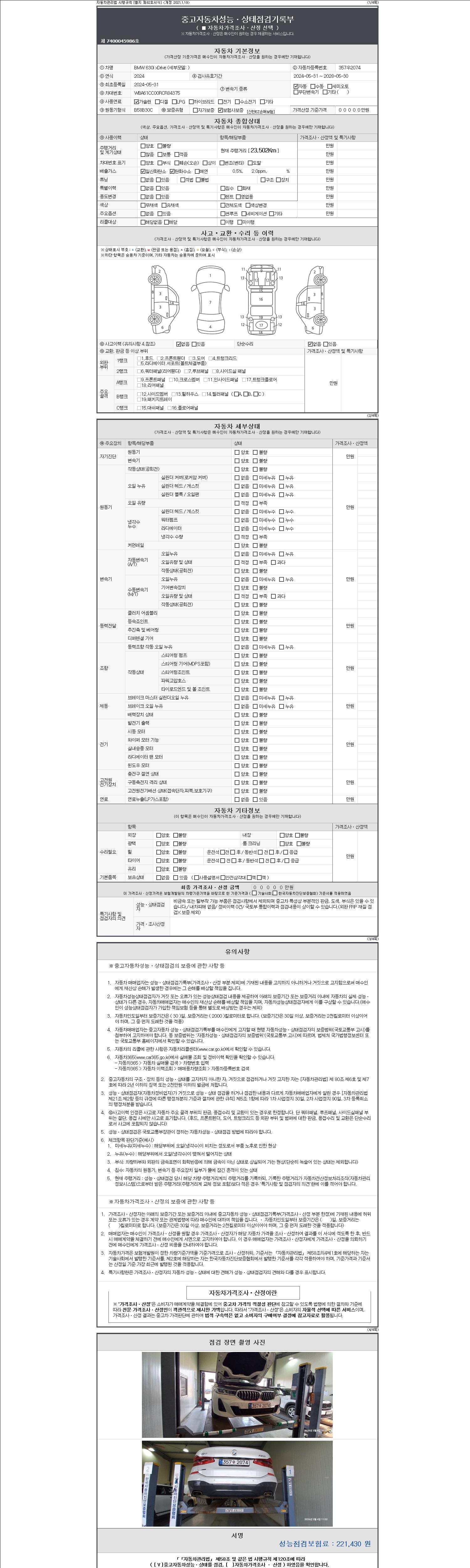 3. 차량의 이미지중 차량번호가 의도적으로 가공, 편집 된 경우나 지나치게 가격이 낮을 경우 더욱 세심한 주위를 요구합니다.